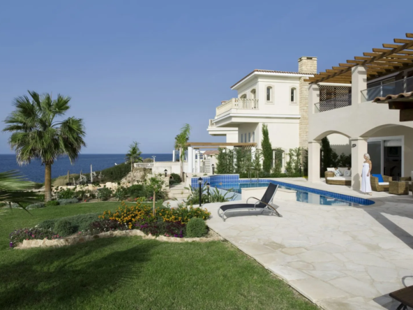 This individual villa features four bedrooms and is conveniently located near the sandy beach. Offering a private swimming pool, spacious verandas, and sun terraces, these villas provide breathtaking views of the Mediterranean. Additionally, the estate includes available plots of land for sale, complete with building permissions for constructing houses. All essential amenities such as well-maintained asphalt roads, electricity, water supply, lighting, and drainage are readily available. Situated on the outskirts of one of the finest beaches in the Paphos region, this area is renowned for its exclusivity in the real estate market of Cyprus.